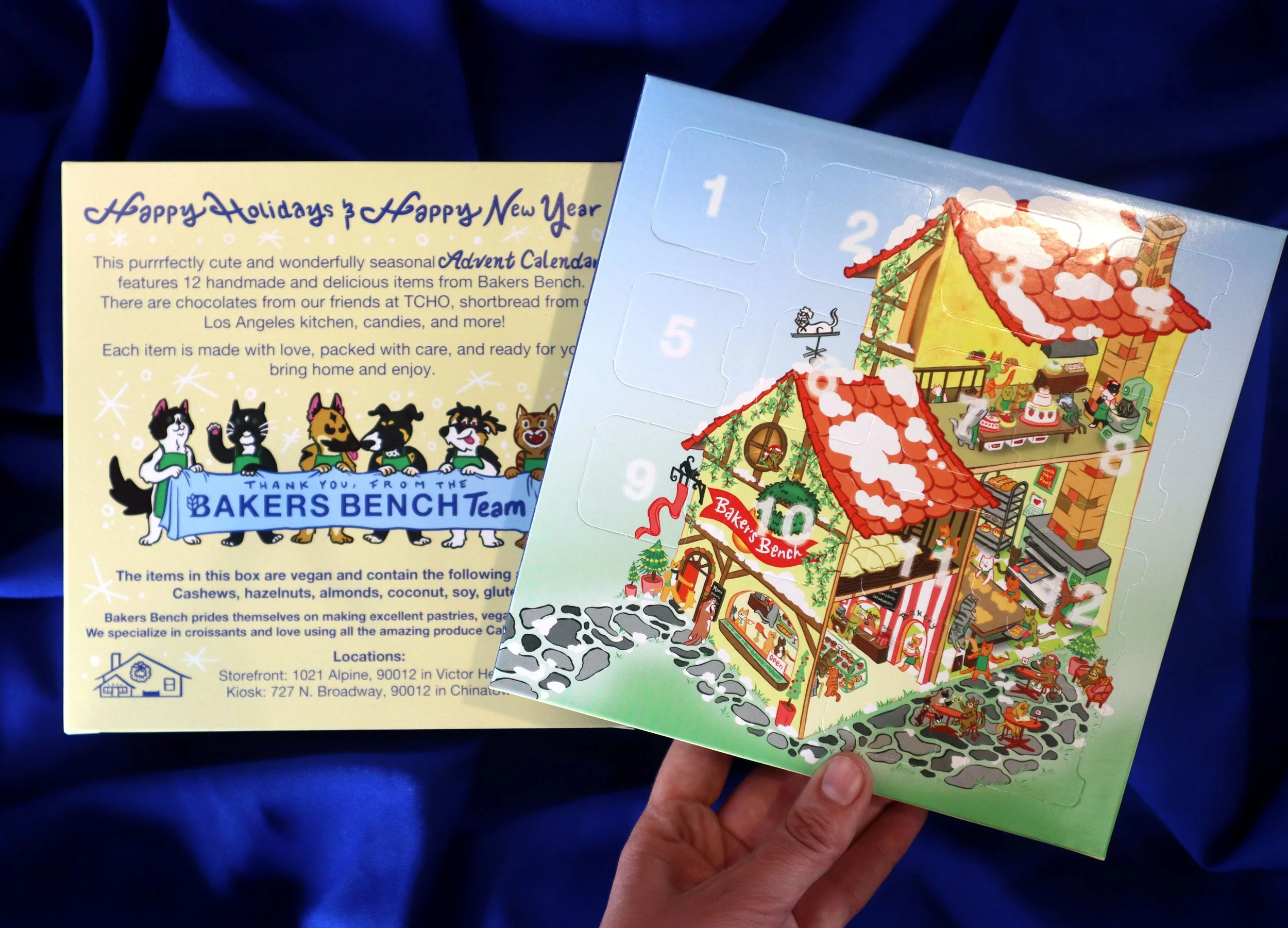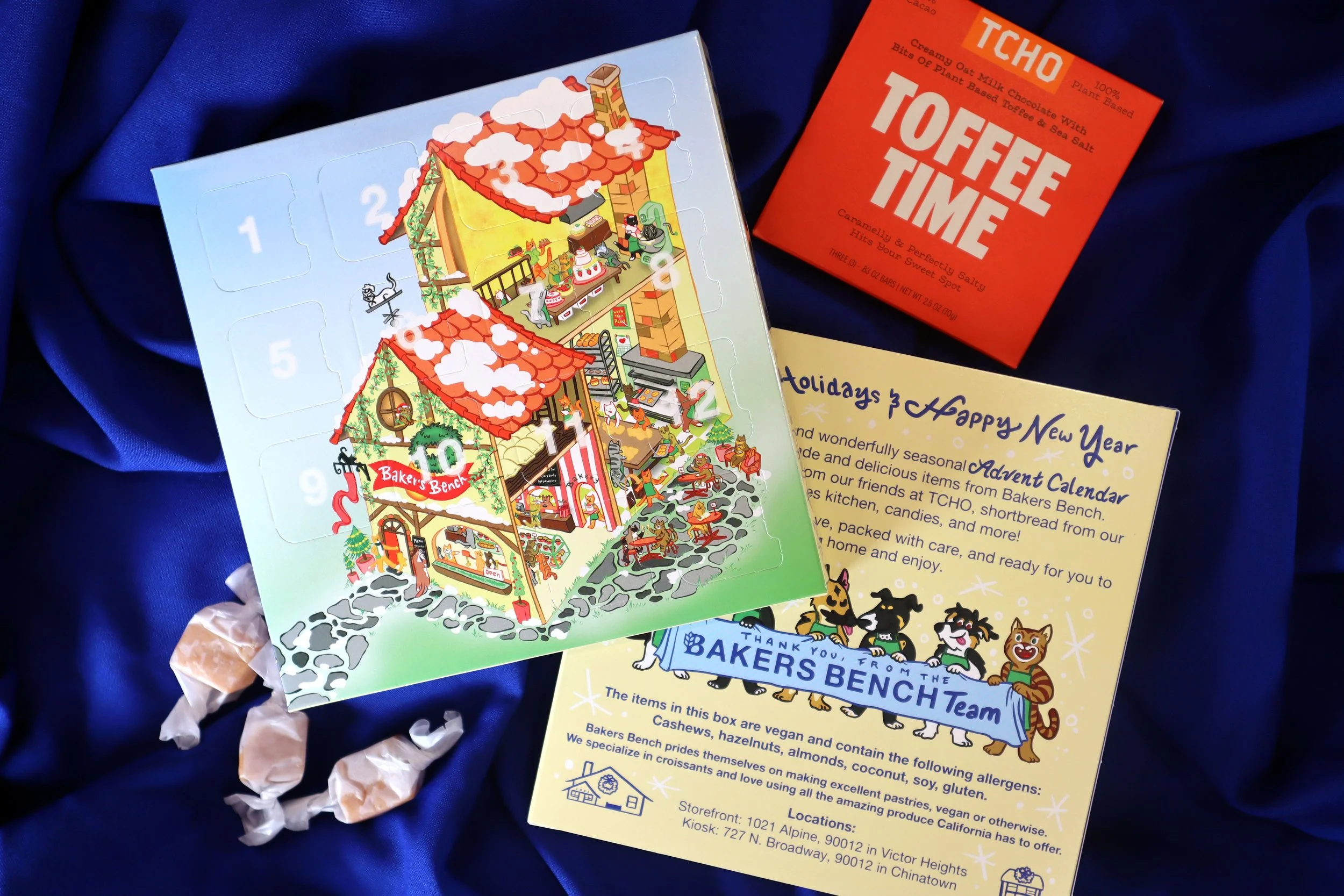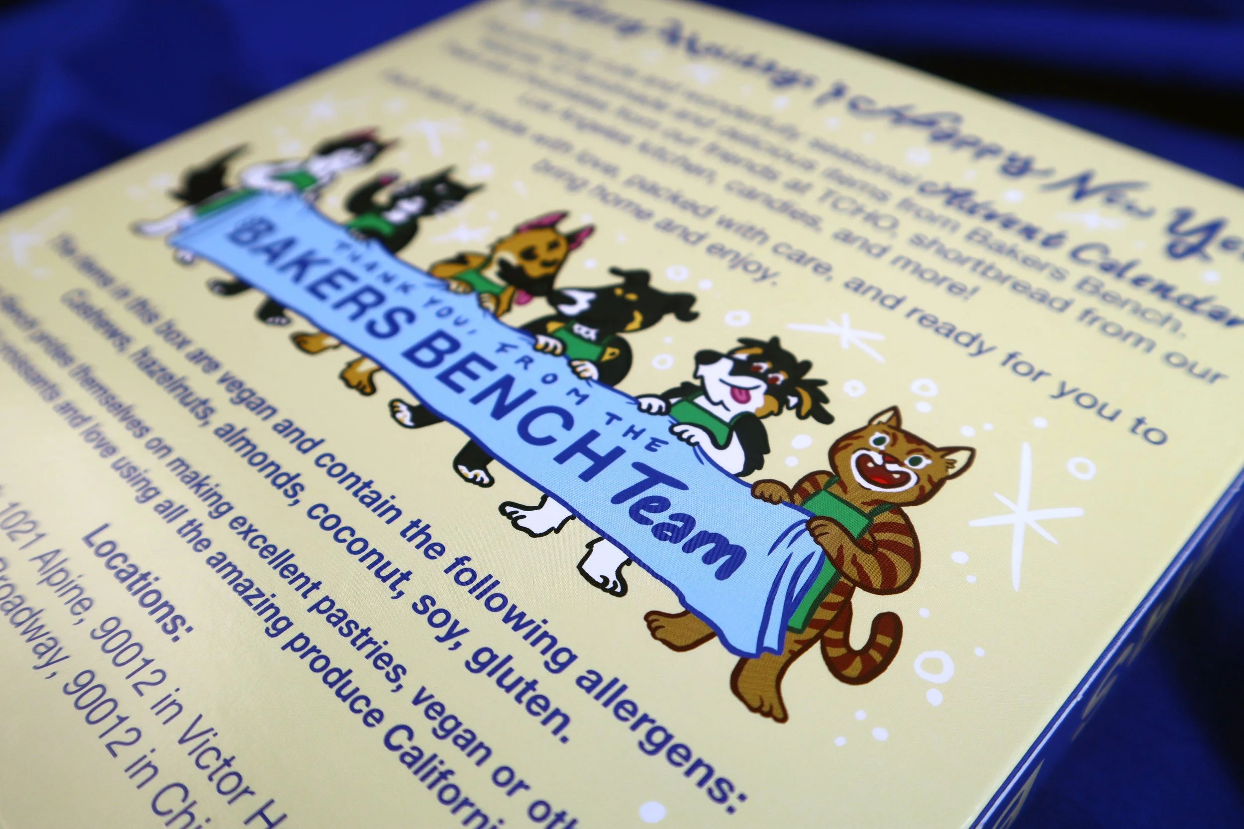 Designed in collaboration with Bakers Bench. This purrrfectly cute and wonderfully seasonal Advent Calendar features 12 handmade and delicious items from Bakers Bench. There were also chocolates from our friends at TCHO, shortbread from our Los Angeles kitchen, candies, and more!
